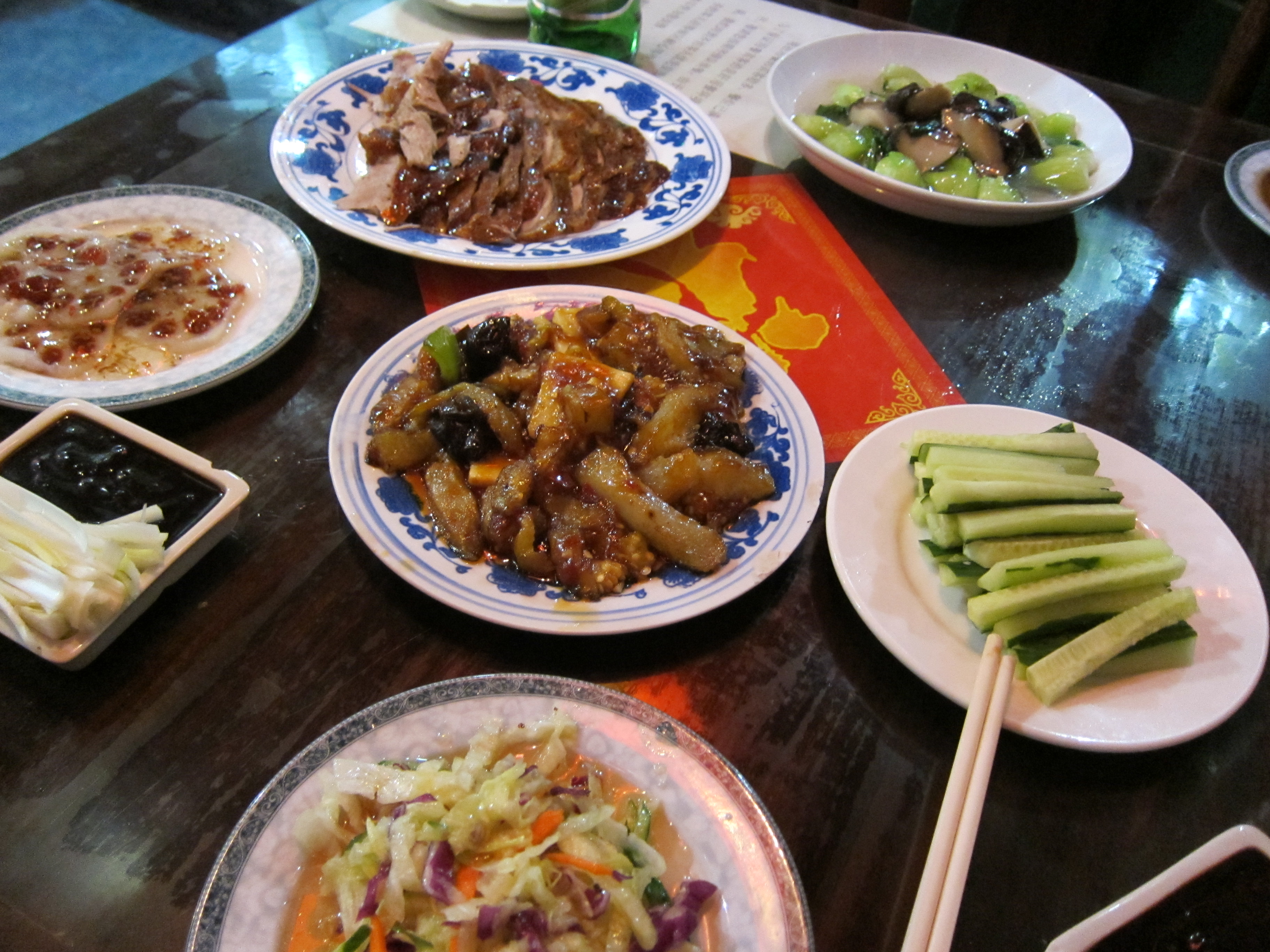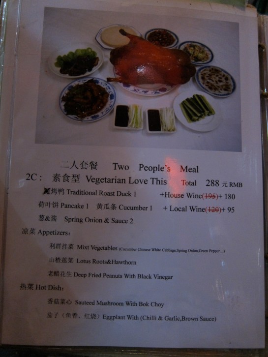 We found the restaurant simply by paging through our Fodor’s Beijing guide book. Sounded good so why not?! You can only imagine how excited I was when we were told during our dinner by some fellow Americans seated next to us that Li Qun Roast Duck was featured on an episode of Anthony Bourdain’s No Reservations…I could have died and gone to heaven at that point. It just made the food and experience that much better…as if it needed it:)