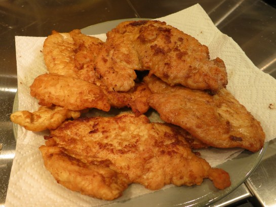 Once cooked, removed from pan and set aside on a plate with paper towels to absorb extra oil.
