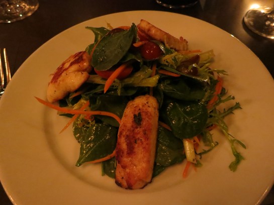 Fried Halloumi & Grapes – baby spinach, frisée, petit tomato, champagne caper vinaigrette
