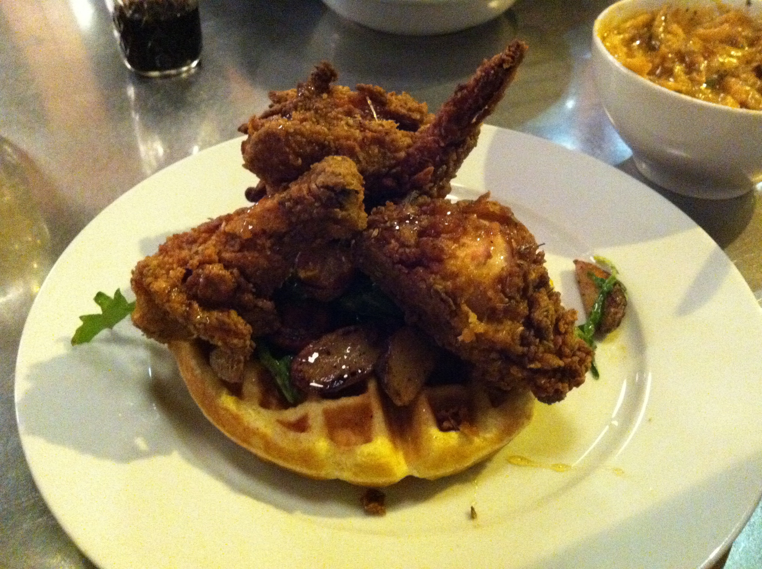 The southern fried chicken does NOT disappoint. Half of a perfectly golden chicken is topped with a black pepper honey drizzle and a side of potato salad. If you’re feeling up to it, order the cornmeal waffle and go to town!