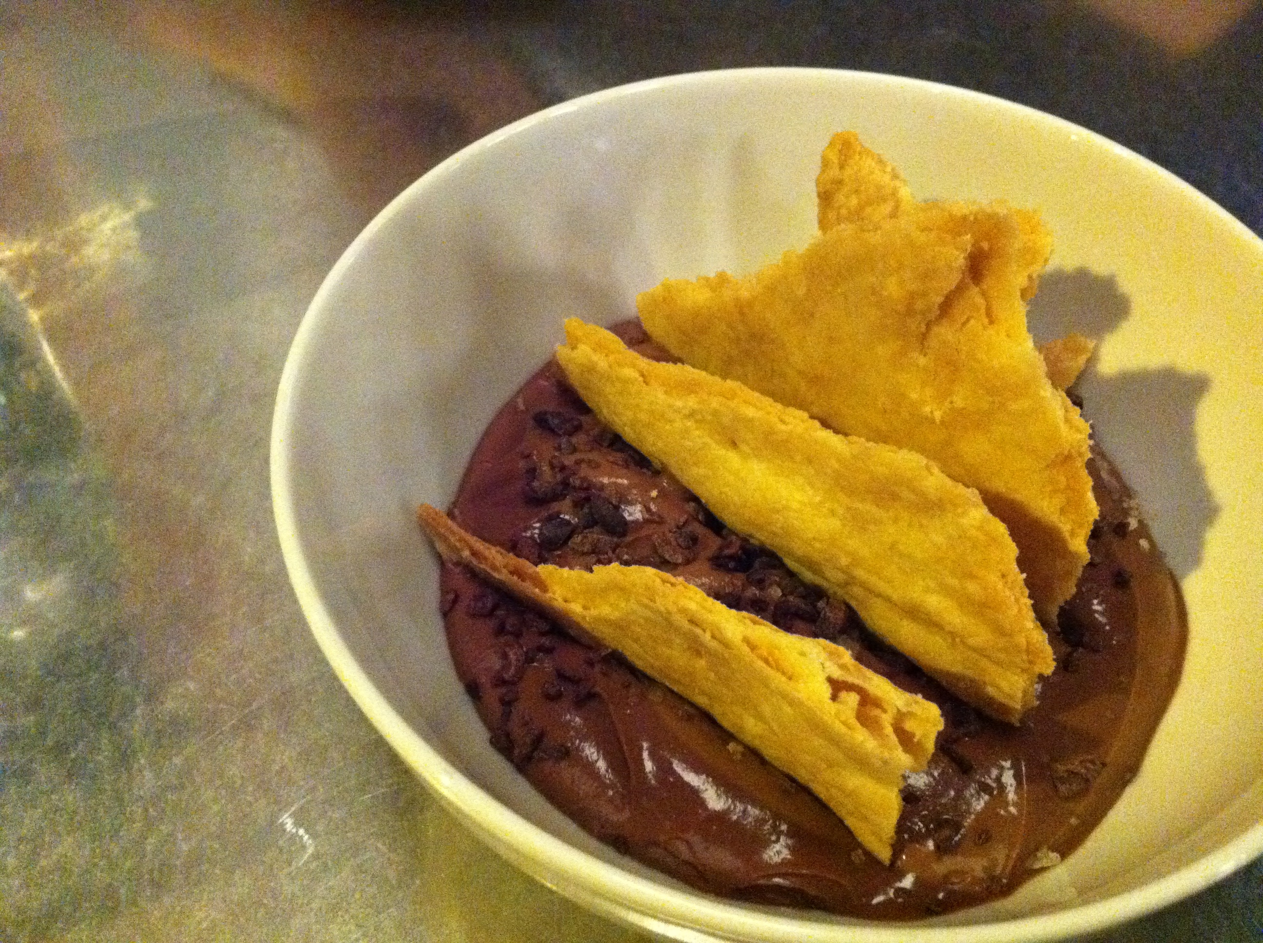 For dessert we indulged in the bittersweet chocolate pudding which was sprinkled with cocoa nibs and sea salt and had pieces of pie crust stuck in it…two thumbs up!