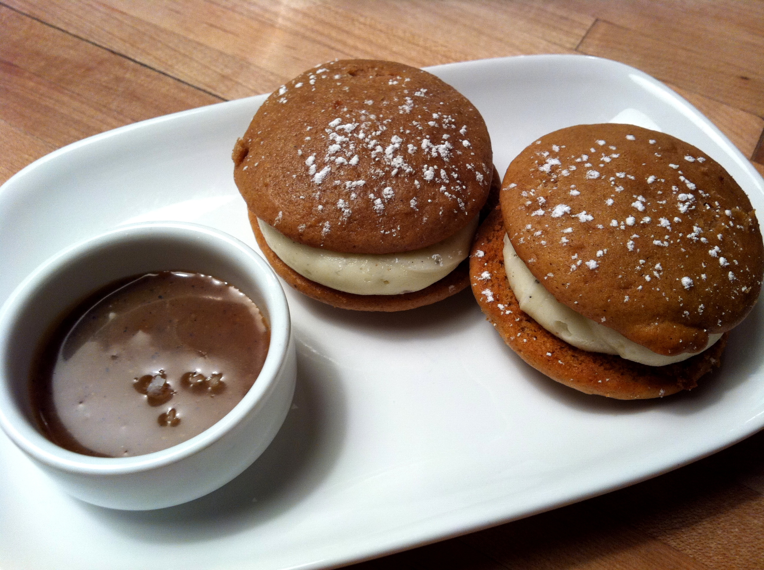 Spice cake ice cream sandwiches with salted caramel dipping sauce