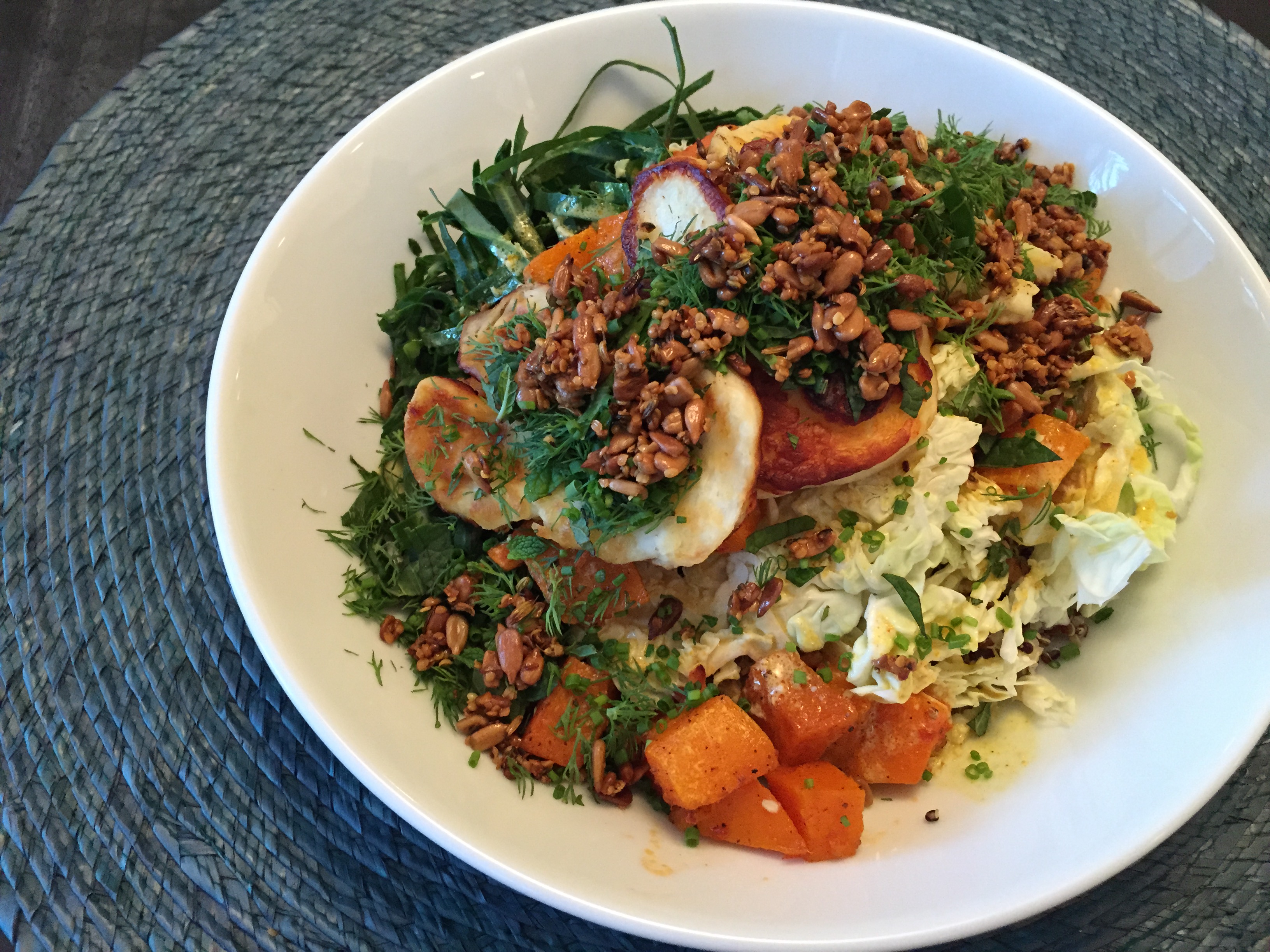 I found this recipe in the February 2015 issue of Bon Appetit and couldn’t wait to make my own Dream Bowl creation. Rather than a traditional recipe, this is more of a guideline to help you create the concoction that best suites you and your flavor profile. Below is the breakdown with suggestions and ingredients to consider. I roasted my sweet potato and butternut squash in harissa and loved the flavor it added. A little spicy but not too much. Enjoy!