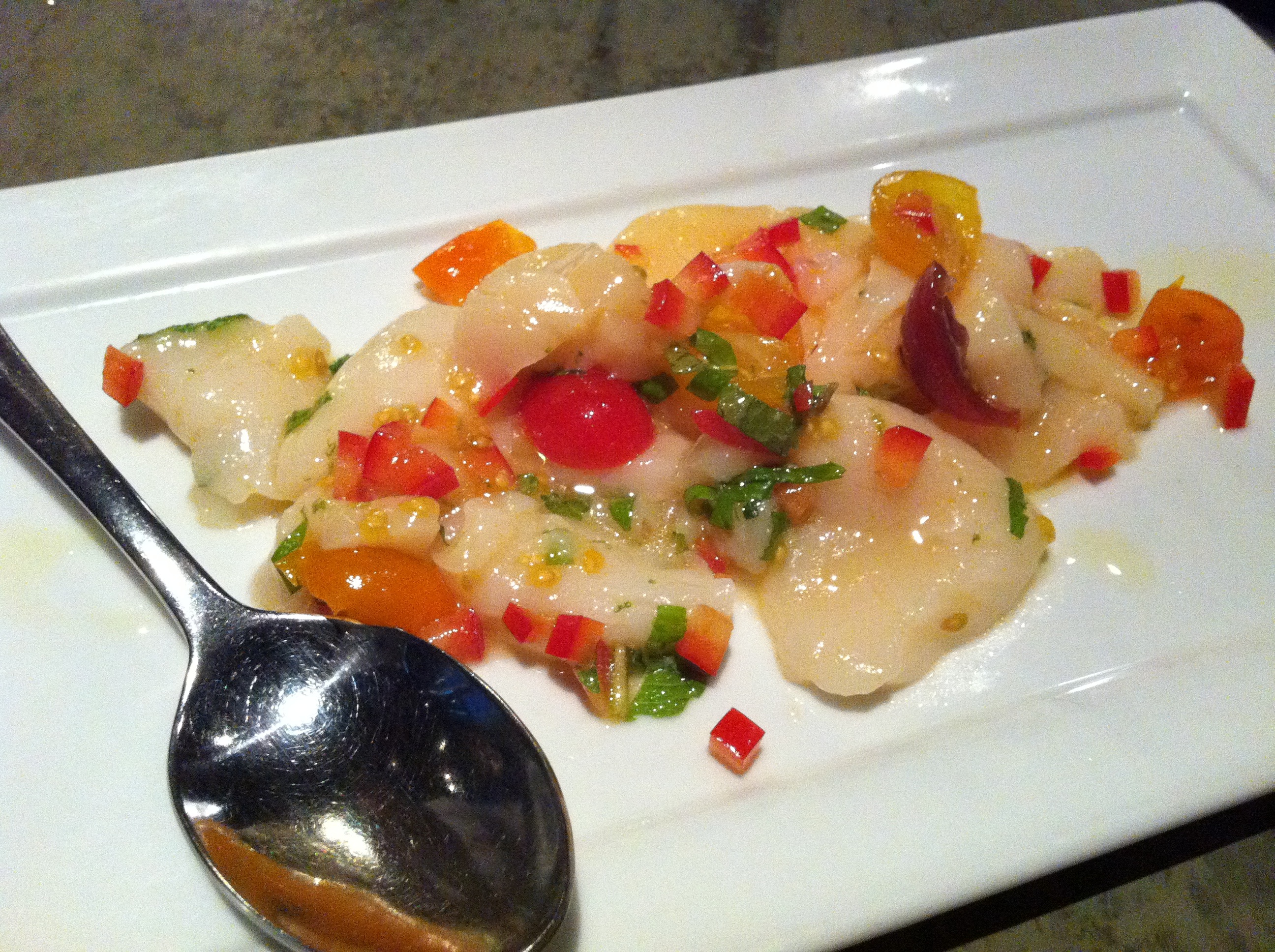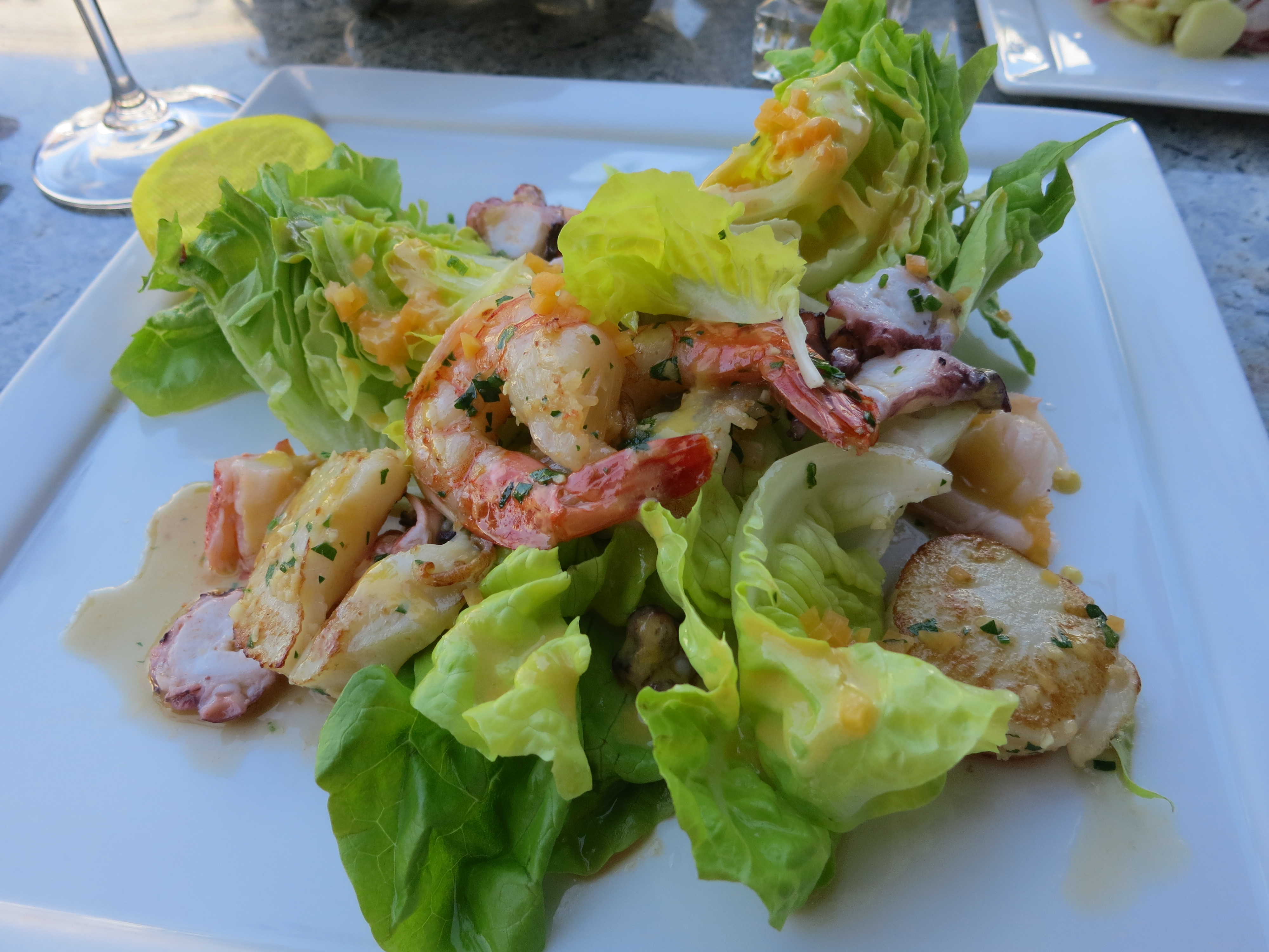 We sat outside on the terrace rather than in the main dining room which was very lovely and green with plants hanging above and all around. Overall our meal was spectacular from start to finish. So much fresh seafood, I could have eaten here every day. Absolutely nothing about this meal was disappointing.