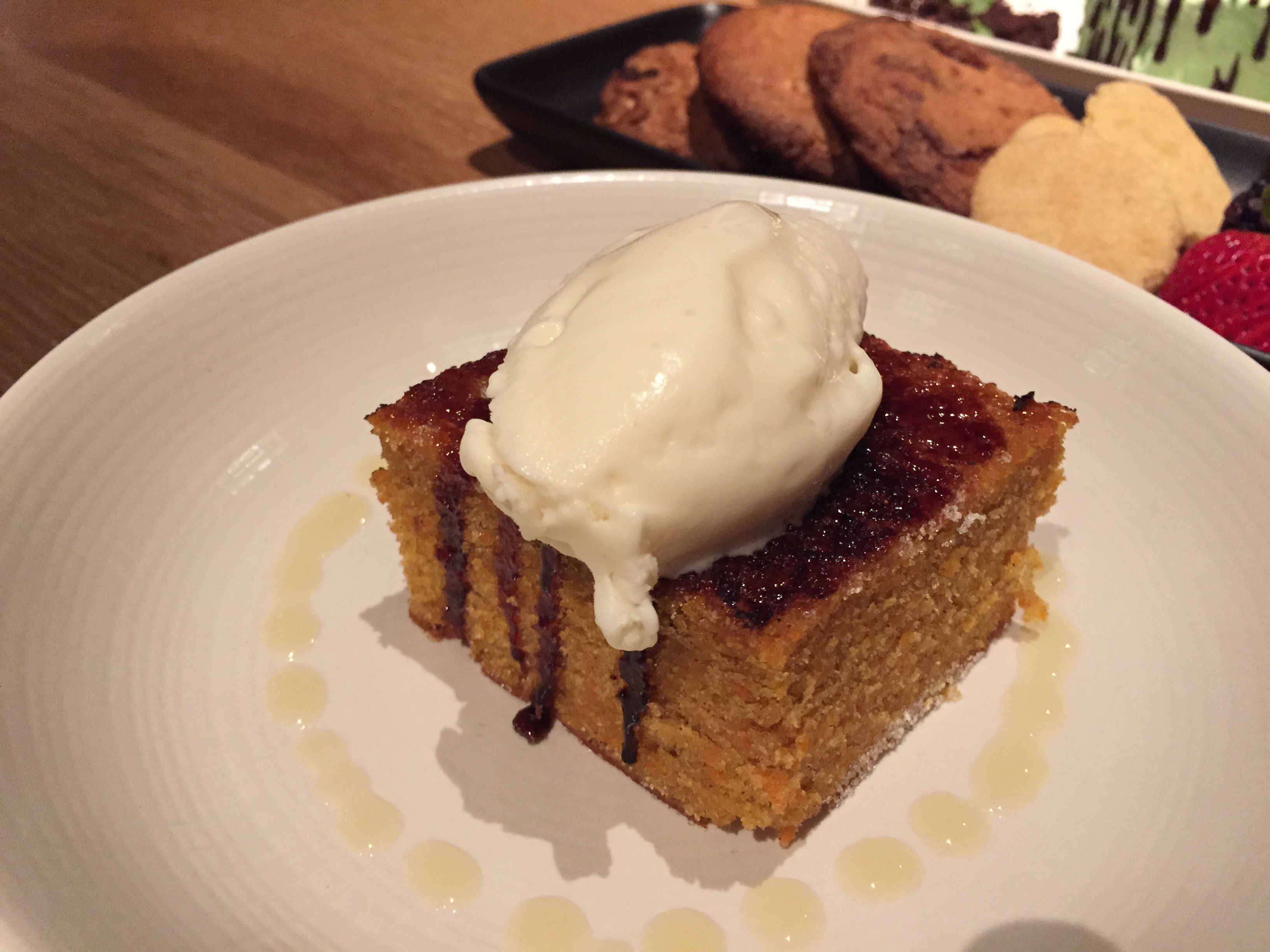 BRULEE CARROT CAKE, cream cheese ice cream, ginger syrup